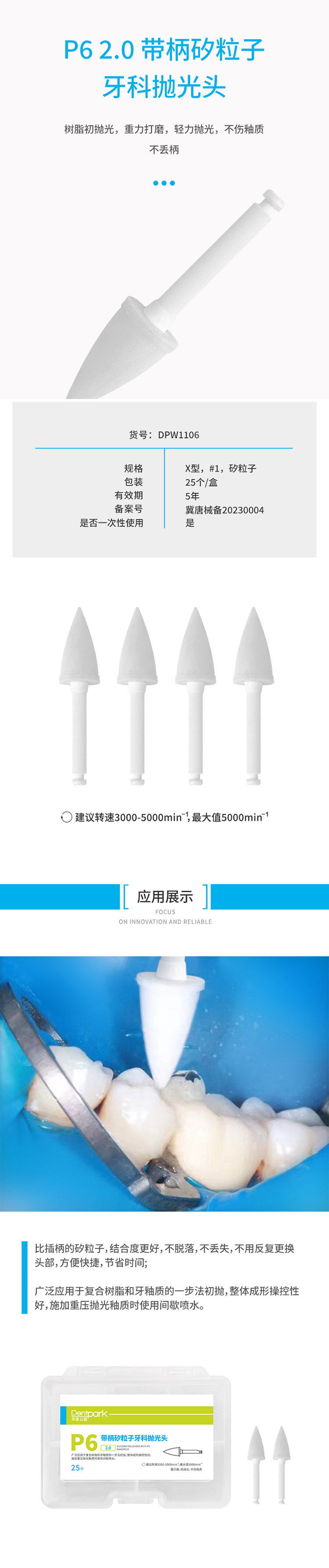 牙医公园 P6 2.0带柄矽粒子牙科抛光头25*1商品编号:4460128001